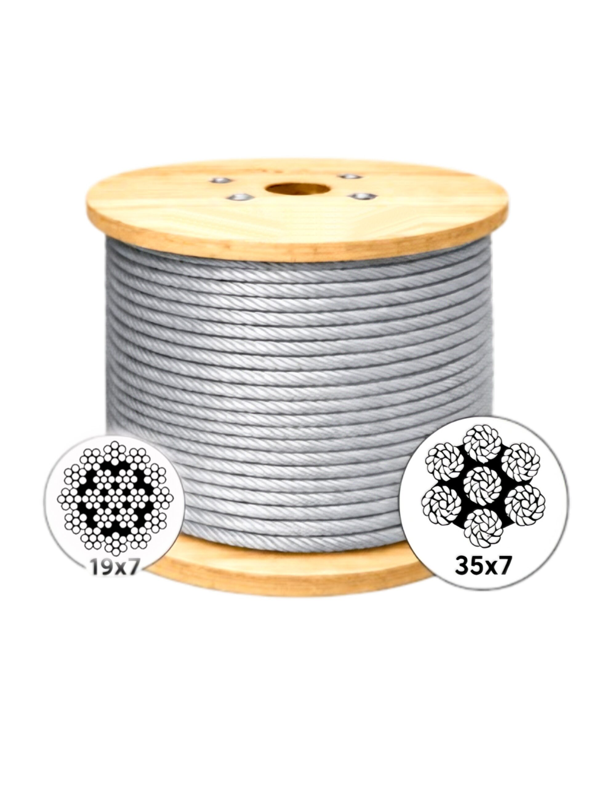 Lưu ý: Một số chuyên gia khuyến cáo loại 19×7 thích hợp cho tời kéo độ cao vừa và tải vừa; nếu cần nâng hàng siêu nặng ở độ cao lớn hơn, cấu trúc 35×7 có thể là lựa chọn tối ưu hơn về độ bền mỏi.